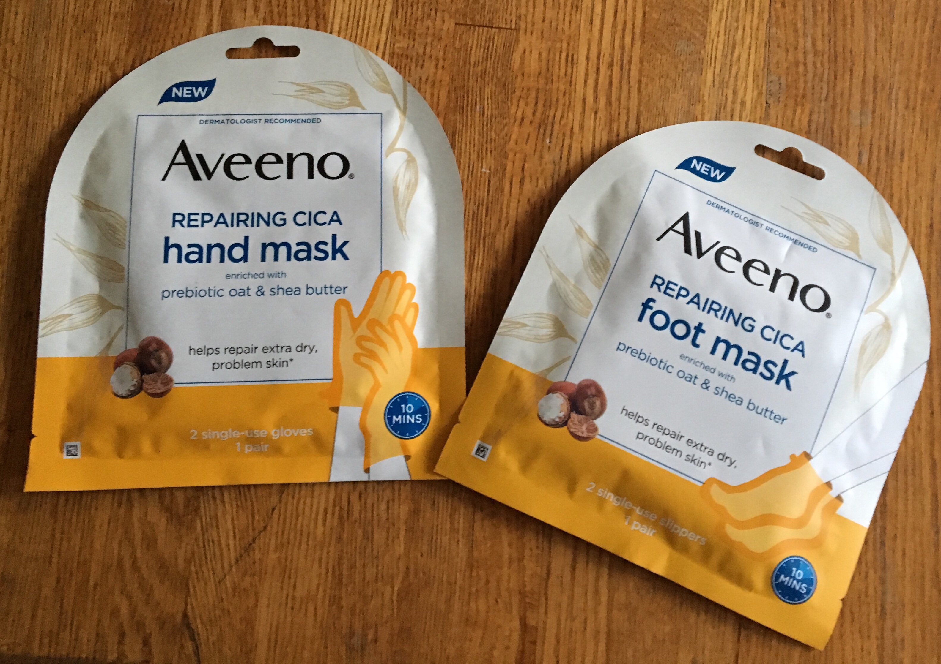 The other masks I used today were these fun Aveeno Repairing Cica hand and foot masks. With these, you slip your clean, dry hands and feet into disposable booties and gloves, chill out for 10 minutes, then remove and massage the leftover product into your skin. These masks contain shea butter and prebiotic oat, which is meant to soothe and nourish the skin. I really enjoyed these masks and can feel a definite increase in hydration in my hands and feet. If you have tough calluses this won’t eliminate them, but it will leave your skin feeling really comfortable and soft. As a bonus, these masks are fragrance-free and formulated for sensitive skin. I would recommend them for anyone looking for a quick and easy winter pampering session!