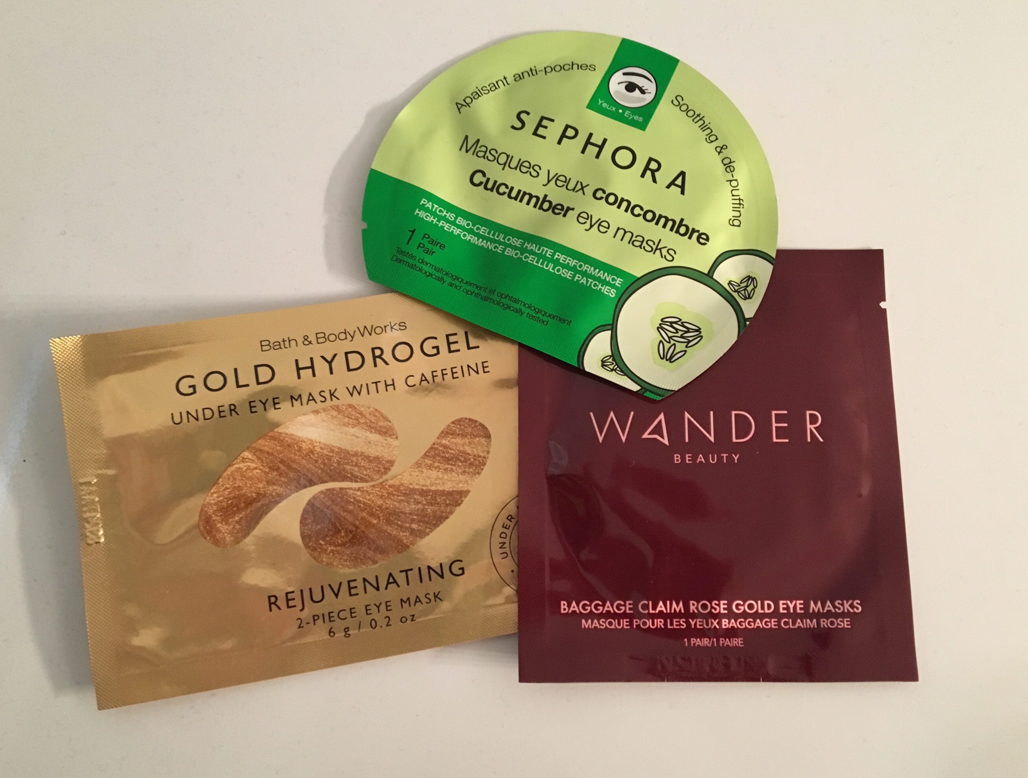 Bath & Body Works Gold Hydrogel Under Eye Mask with Caffeine: By far my favorite of the eye masks, this pair of rubbery gold masks was easy to apply, fun to wear, and drastically reduced my eye puffiness – caffeine is the key. Next time I’m near a Bath & Body Works I intend to stock up on these little gems!