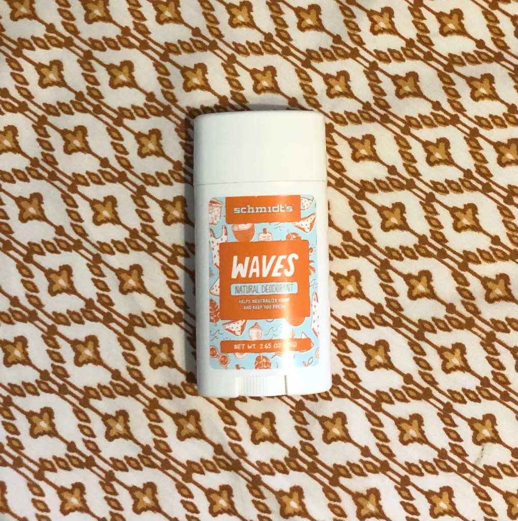 I was drifting down the beauty aisles of TJ Maxx when my best friend pointed to an appealing blue and orange labeled tube of Schmidt’s Waves Natural Deodorant and told me it was her absolute favorite. As I trust her with all things beauty-related, I grabbed one and decide to give it a go. I put it in my medicine cabinet and forgot about its existence until I ran out of my usual antiperspirant and needed something to get me through. I swiped it on and hoped for the best.