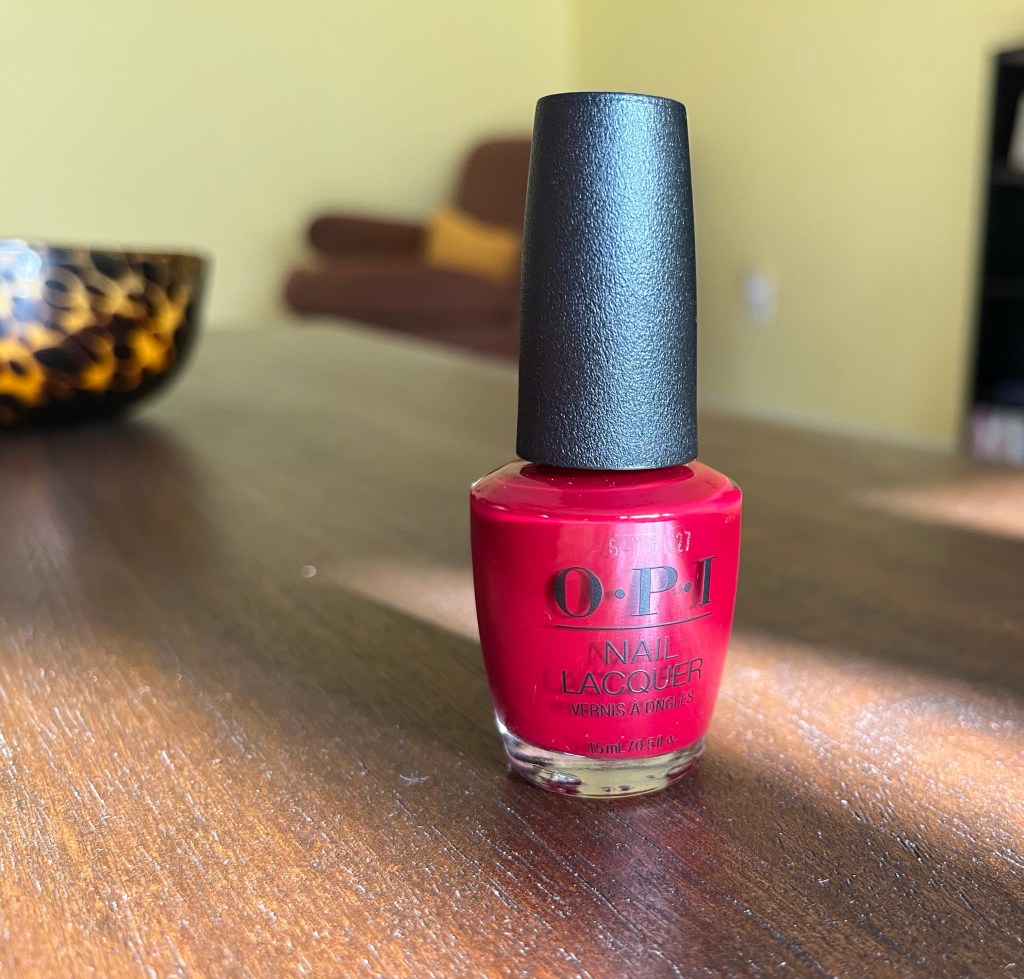 While at the salon getting my haircut yesterday I couldn’t help but notice my hairdresser’s immaculately pedicured toenails, in the most perfectly chic deep red. I told her I loved the color and she thanked me and tried to remember the color. She knew it was a deep maroon-y OPI shade but couldn’t remember the name. I told her I was heading to Walgreens immediately following the appointment to try to find it, and that’s exactly what I did.