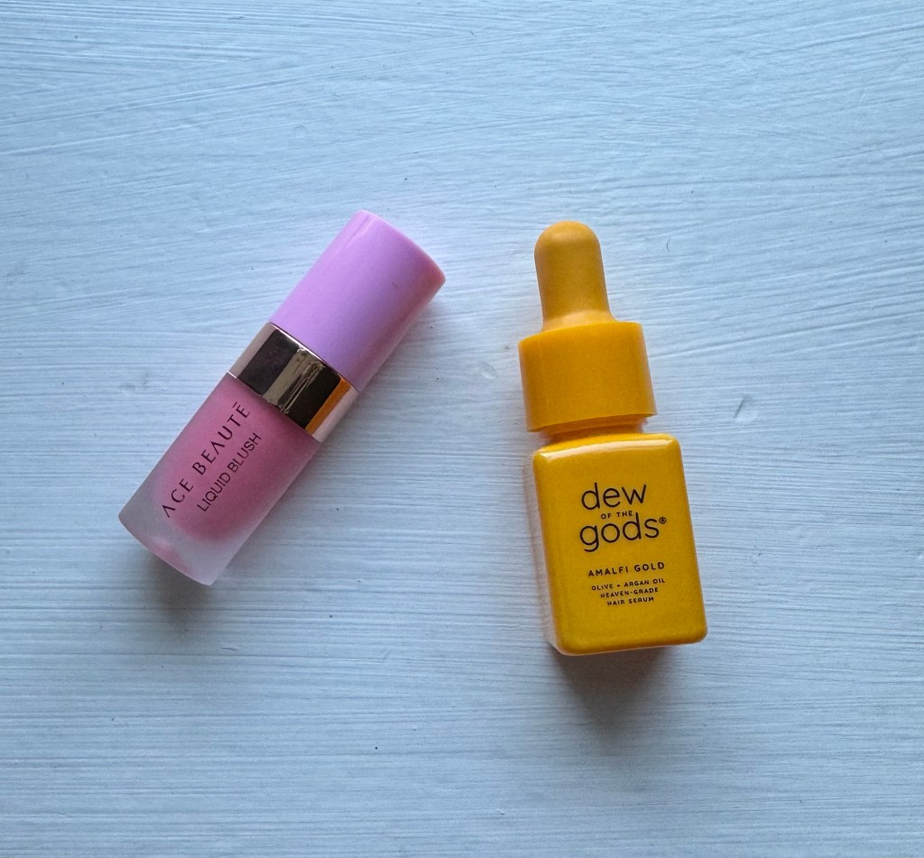 Dew of the Gods Amalfi Gold Hair Serum is a lightweight heat protecting hair serum made from olive and argan oils. It has a light, fruity scent and left my hair shiny and flyaway-free, even after walking outside in the wind. It didn’t make my hair greasy or weigh it down. I’m particularly fond of the cheery yellow packaging and medicine dropper style applicator, which allowed me to use the precise amount of product I wanted (3 drops).